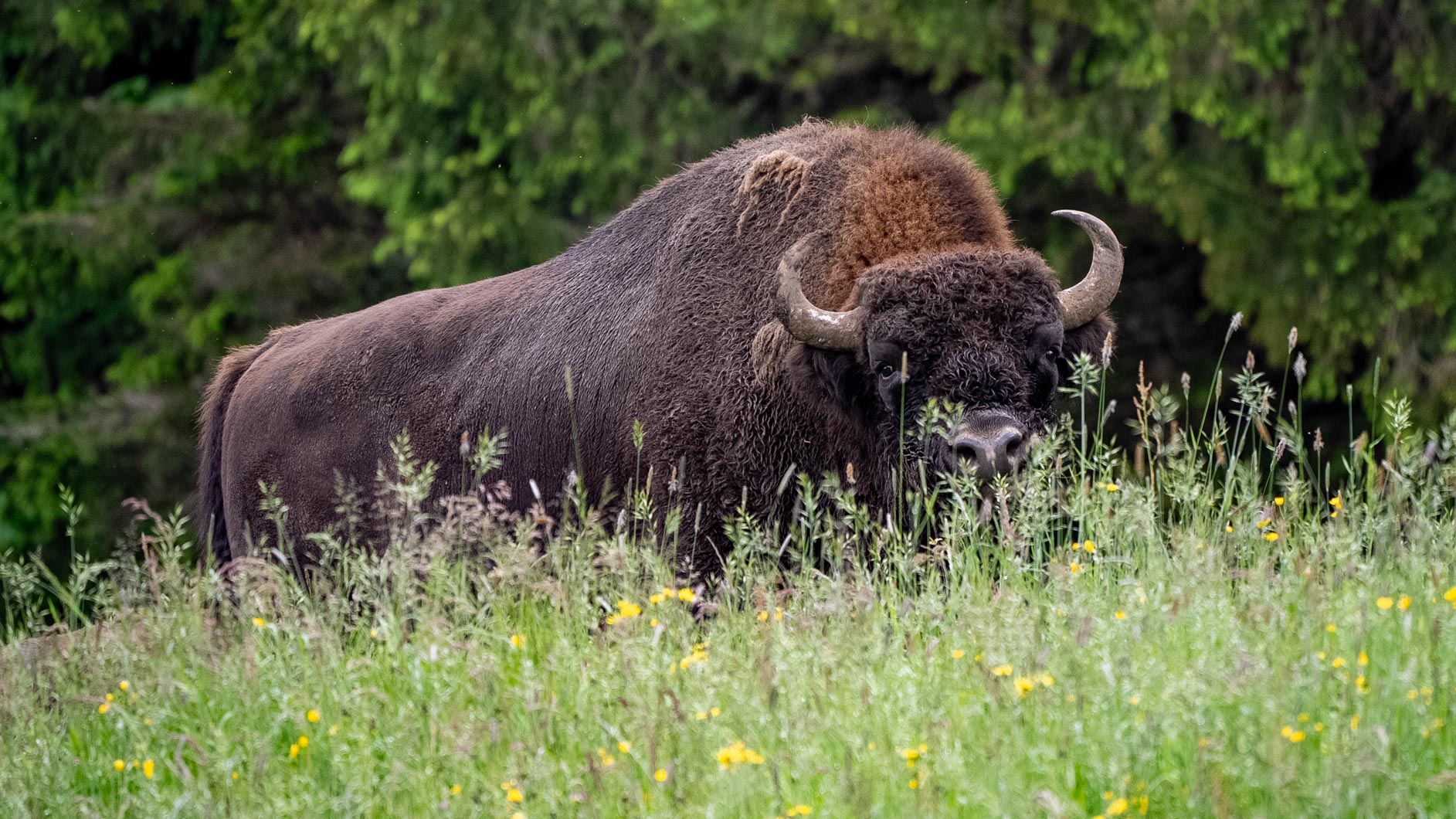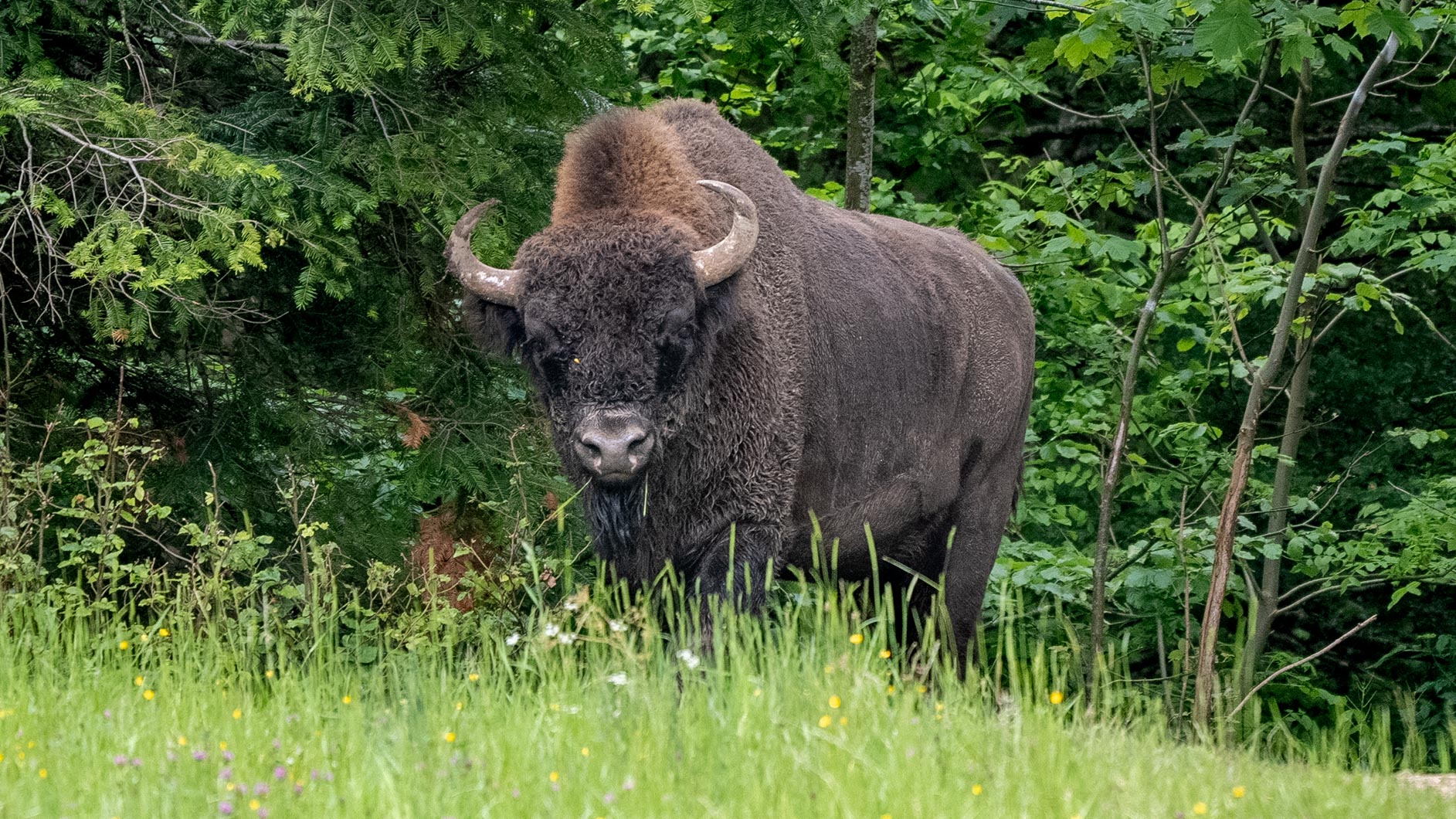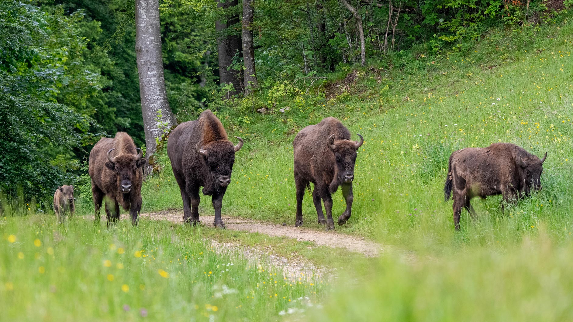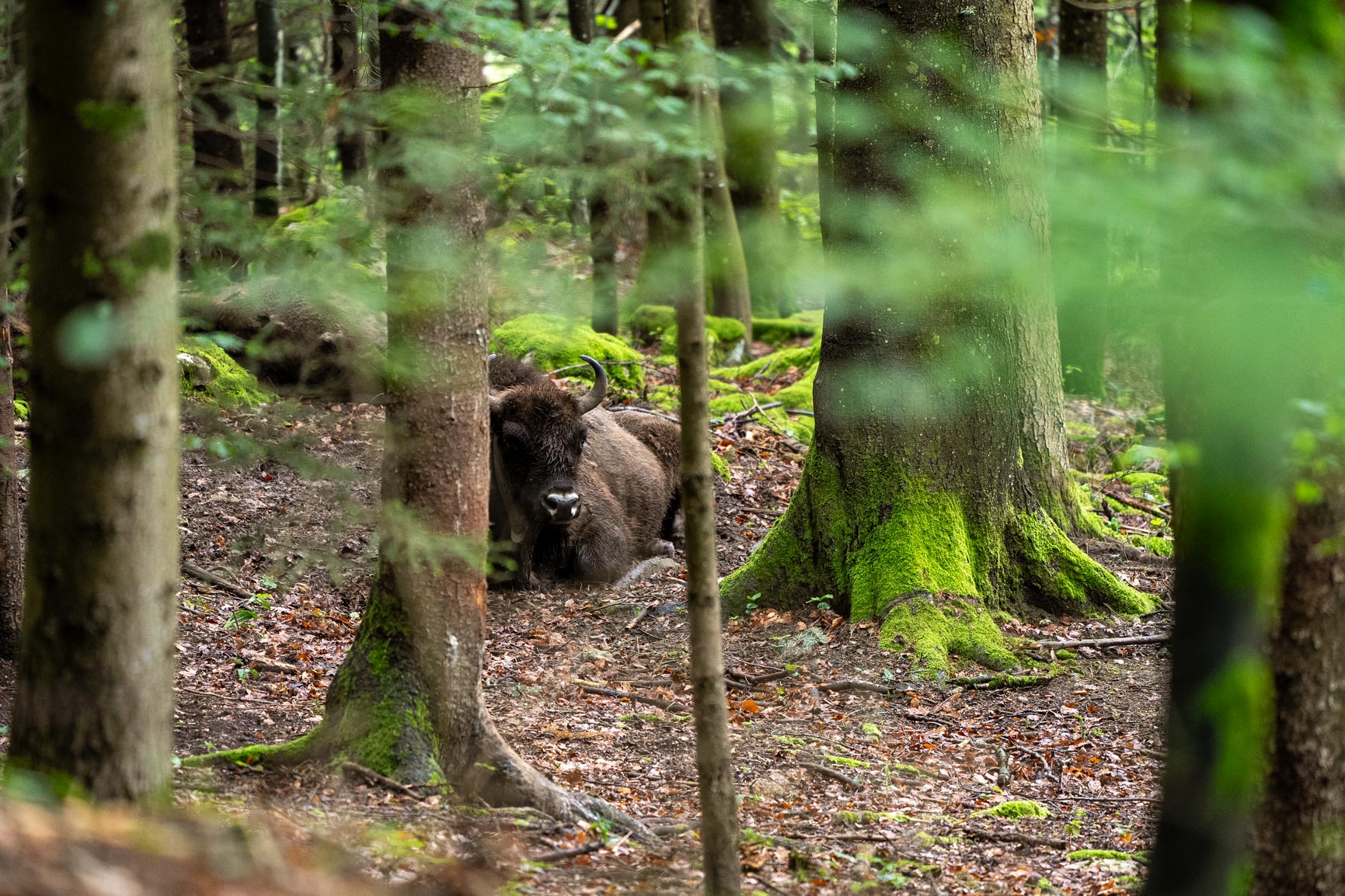 Einem so grossen Tier gegenüber stehen, nur bewaffnet mit der Kamera und Teleobjektiv ist ein eindrückliches Erlebnis. Das Projekt Wisent Thal in Welschenrohr macht es möglich. Geführt durch einen Ranger ging es auf die Pirsch durch den Wald bis wir die ersten Wisente erspähten. Dann hiess es langsam einen geeigneten Standort finden um freie Sicht auf die Tiere zu haben. Im Wald nicht ganz einfach. Auch mussten wir uns immer an die Weisungen des Rangers halten und manchmal auch sehr schnell uns von den Tieren distanzieren. Er kennt die Tiere genau und kann ihre Reaktionen lesen. Als ein junger Bulle genauer wissen wollte wer in da Beobachtet und schnell näher kam, mussten wir genauso schnell das Weite suchen.