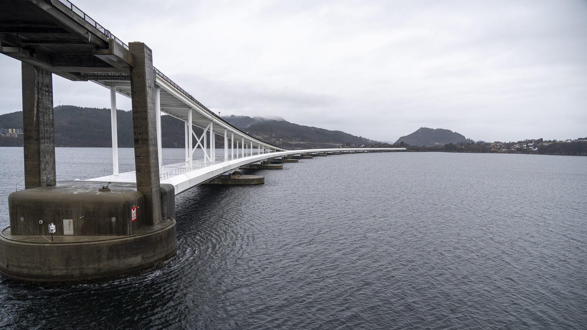 Vor der Ankunft in Bergen kreuzten wir eine spezielle Brücke, die Bergsøysund-Brücke. Es ist eine Schwimmbrücke die für eine Tideschwankung von +- 2.0 m ausgelegt ist.