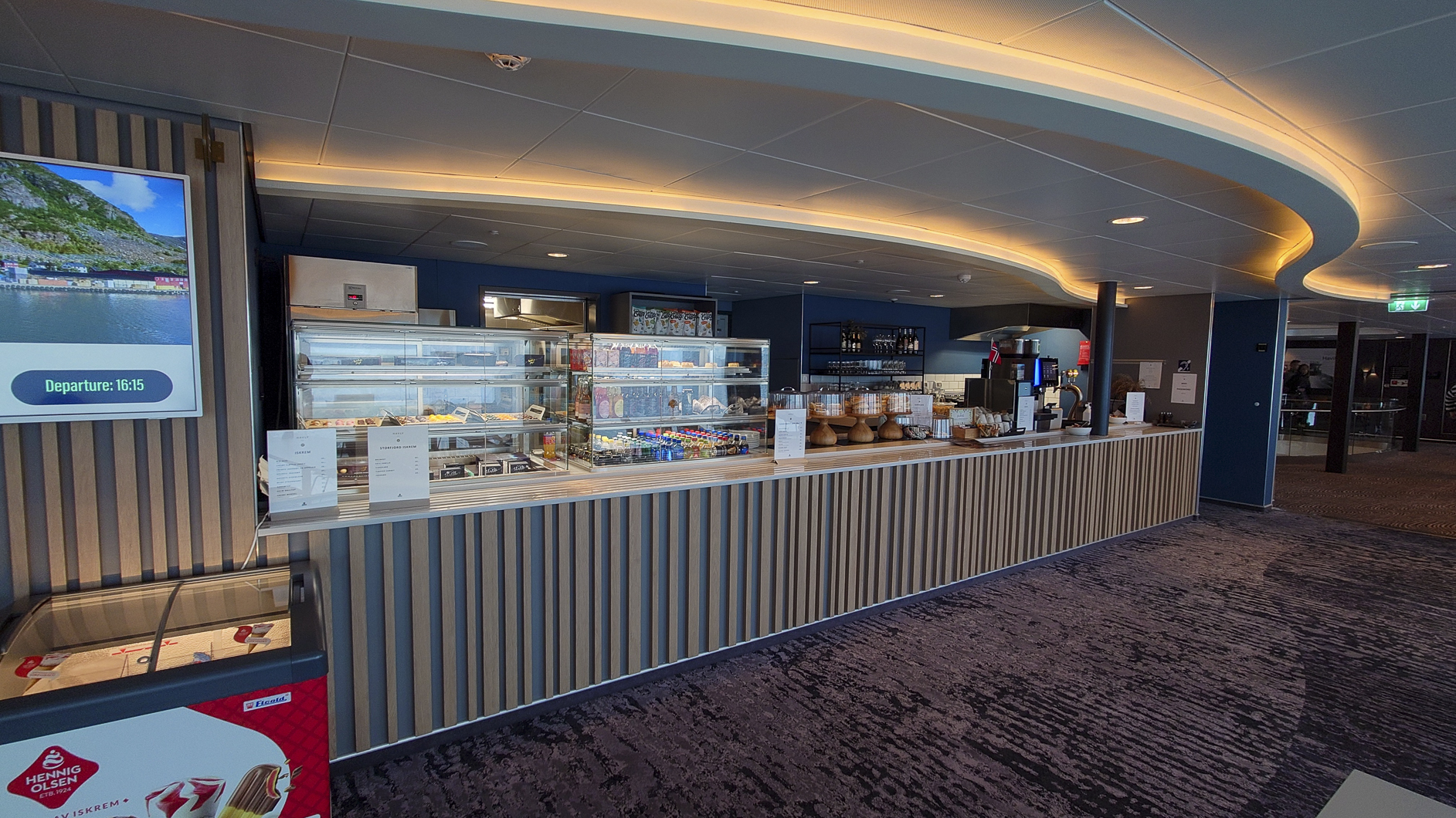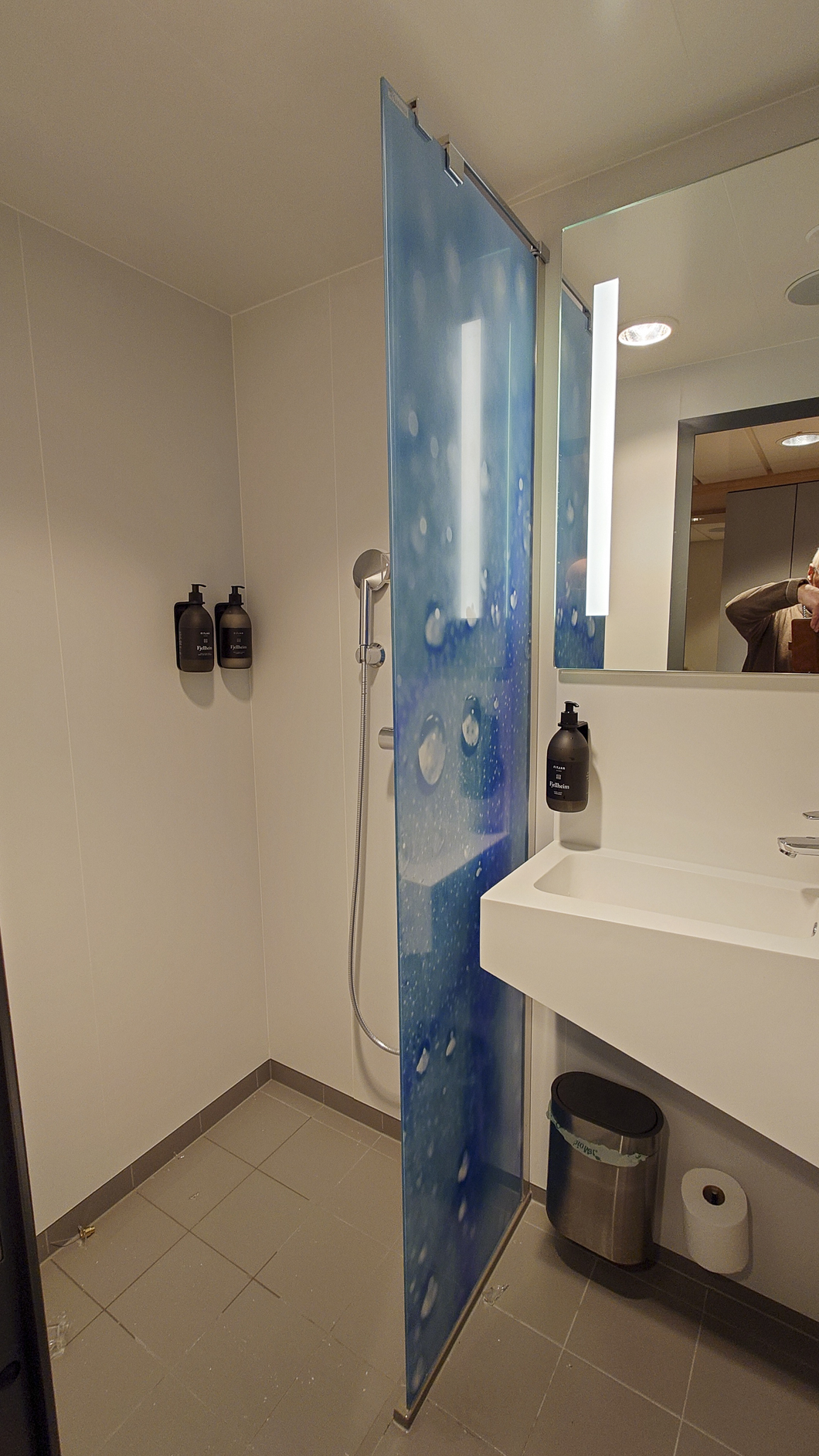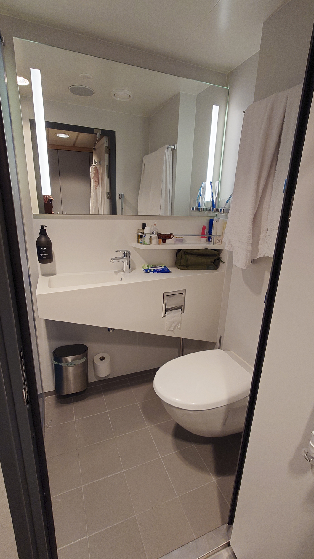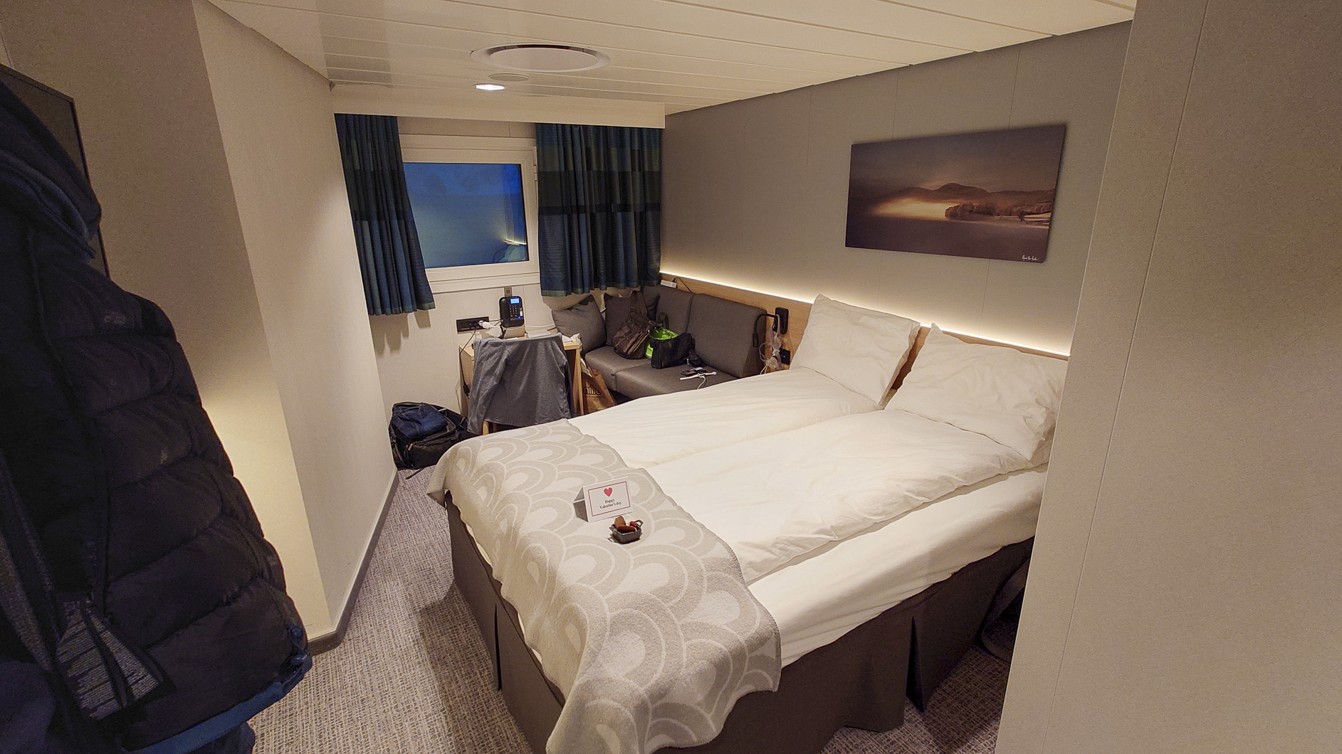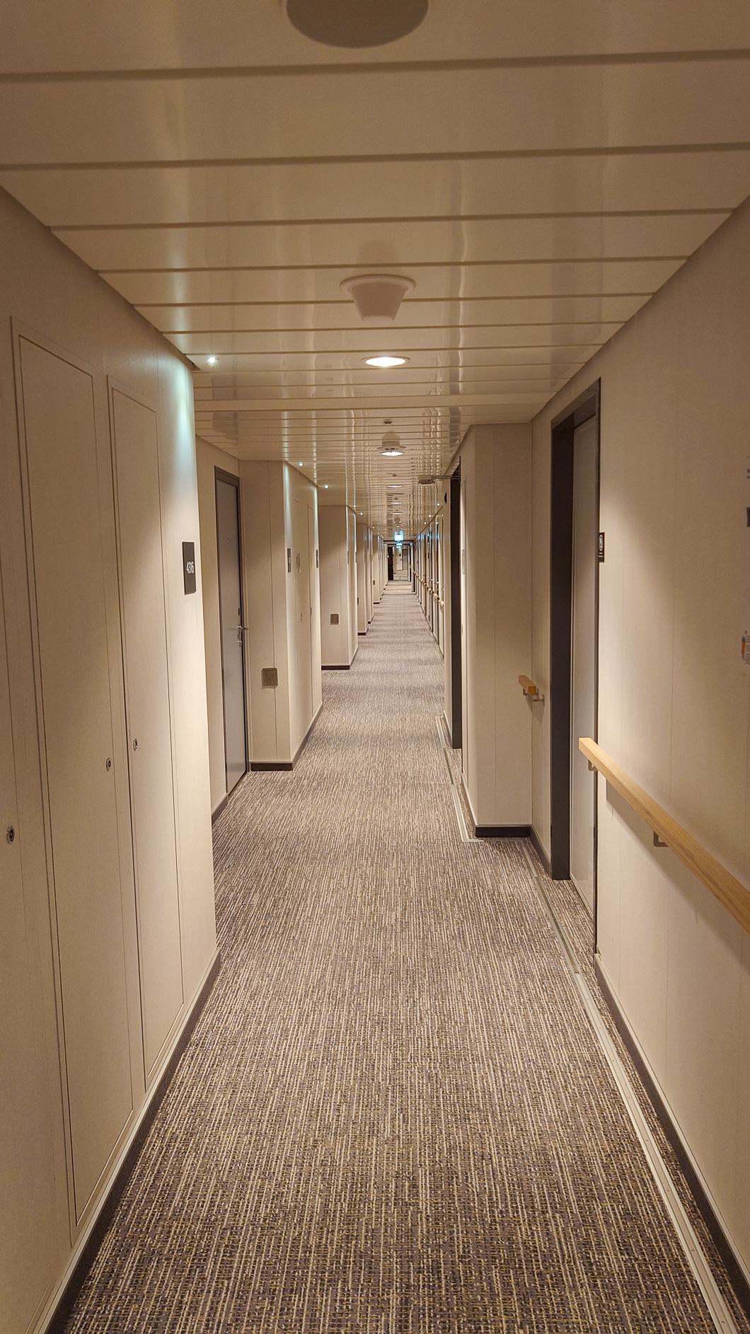 Unser Schiff, die Havila Castor, erst gerade 2 Jahre alt, ist eines der modernsten auf dieser Strecke. Angetrieben wird das Schiff elektrisch und mit Flüssigerdgas (LNG). Mit einem Batteriepaket das 86 Tonnen wiegt und eine Kapazität von 6.1 Megawattstunden hat, kann es 4 Stunden rein elektrisch fahren. Dies ist auch nötig, da ab 2026 nur noch Dieselfreie Schiffe in den Nærøyfjord, Aurlandsfjord, Geirangerfjord, Sunnylvsfjord und Tafjord rein dürfen. Auch die Schiffe von Hurtigruten werden dafür umbgebaut.
