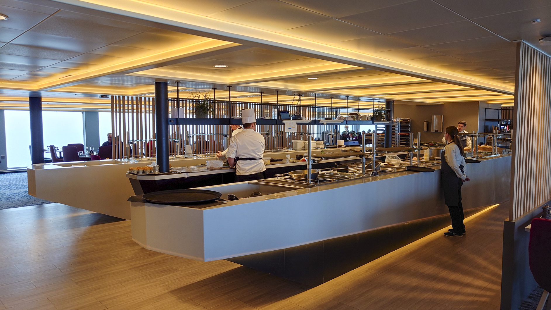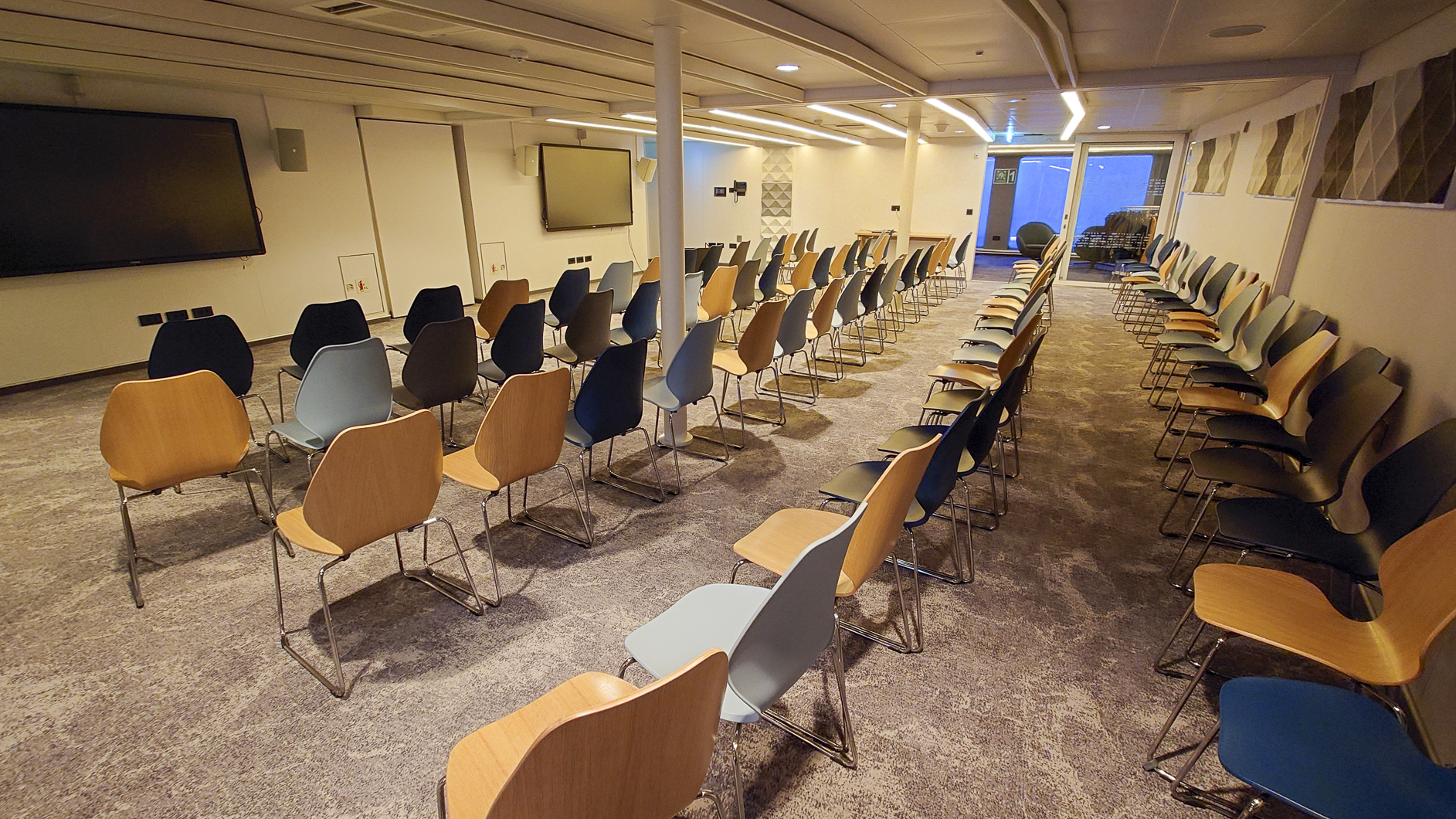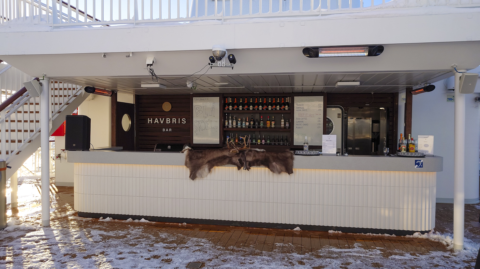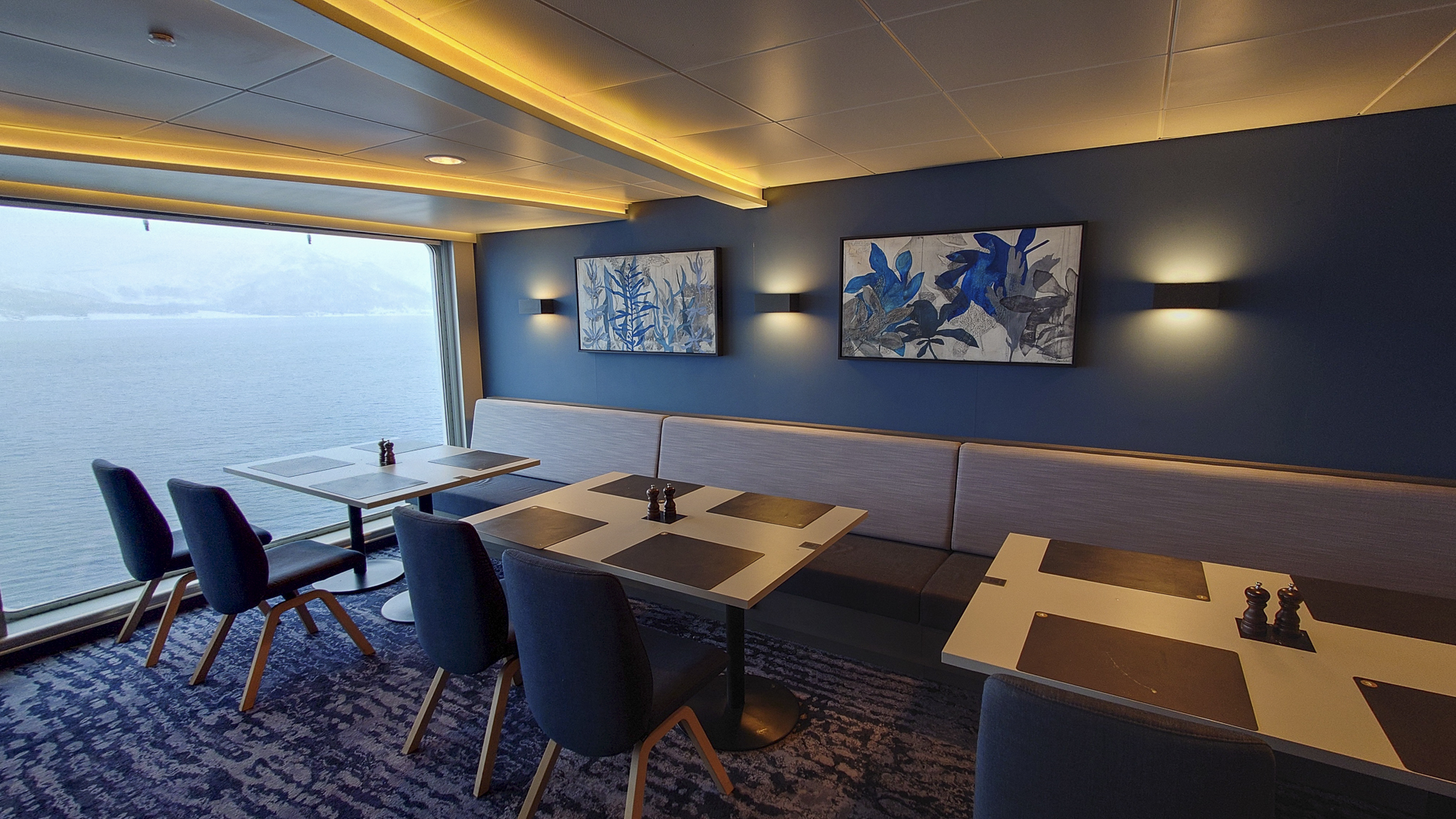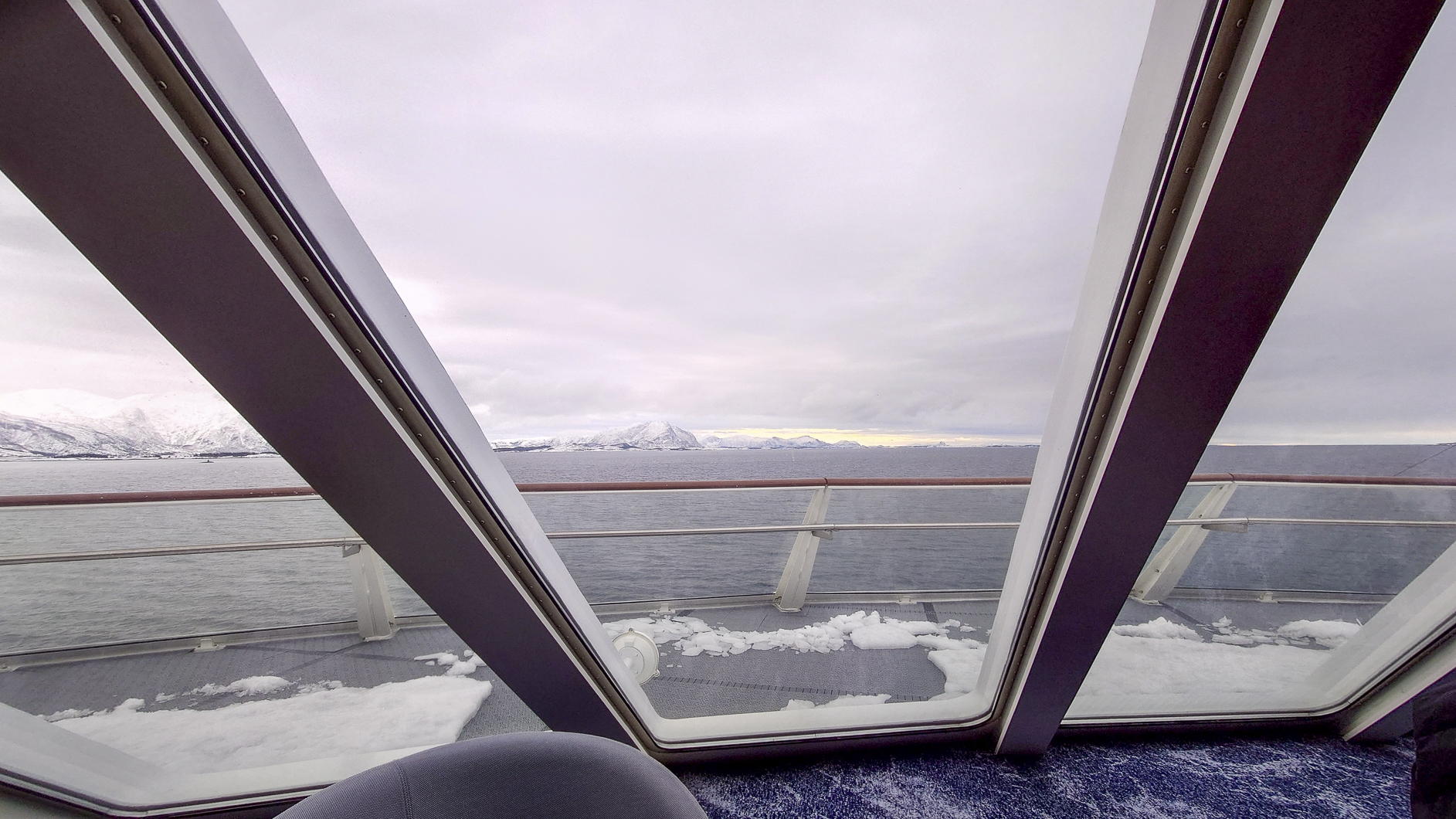 Unser Schiff, die Havila Castor, erst gerade 2 Jahre alt, ist eines der modernsten auf dieser Strecke. Angetrieben wird das Schiff elektrisch und mit Flüssigerdgas (LNG). Mit einem Batteriepaket das 86 Tonnen wiegt und eine Kapazität von 6.1 Megawattstunden hat, kann es 4 Stunden rein elektrisch fahren. Dies ist auch nötig, da ab 2026 nur noch Dieselfreie Schiffe in den Nærøyfjord, Aurlandsfjord, Geirangerfjord, Sunnylvsfjord und Tafjord rein dürfen. Auch die Schiffe von Hurtigruten werden dafür umbgebaut.
