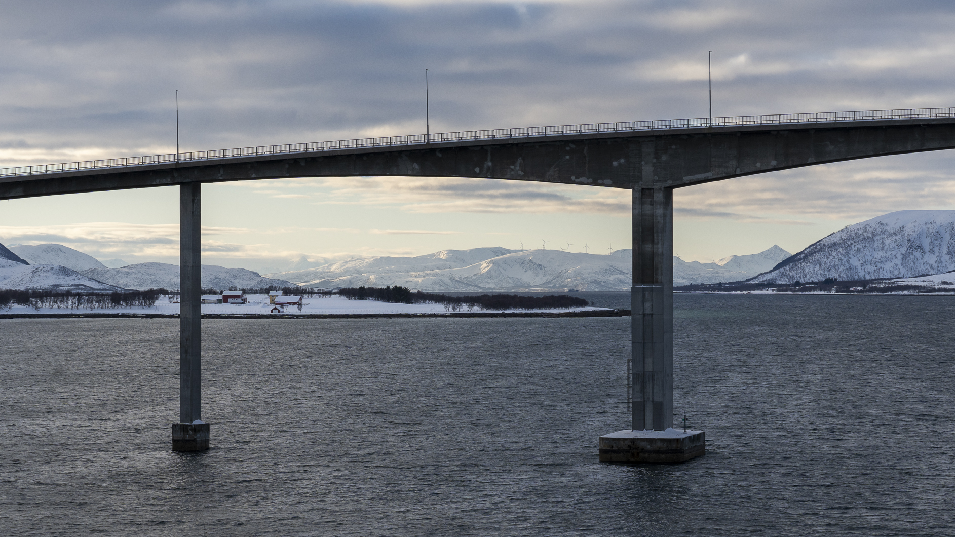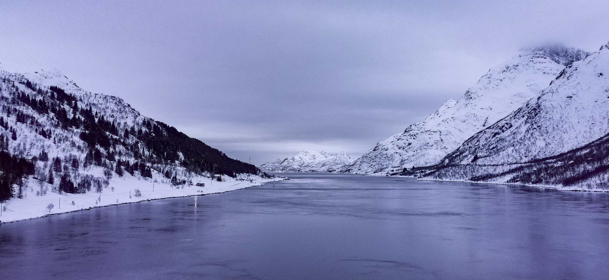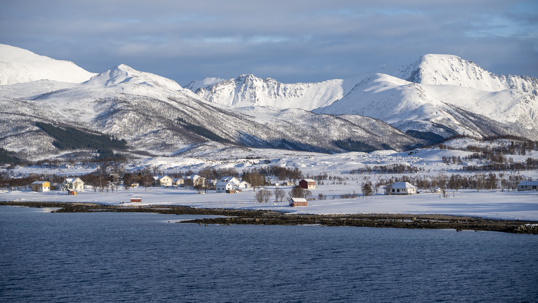 Stokmarknes ist ein Teil der Vesterålen mit seiner überwältigten Natur. Gegen Abend gleiten wir durch den Tengelfjord der an seiner schmalsten Stelle gerade mal 200 m misst. Eigentlich ist es kein richtiger Fjord, weil ein Fjord an eine Seite geschlossen ist.