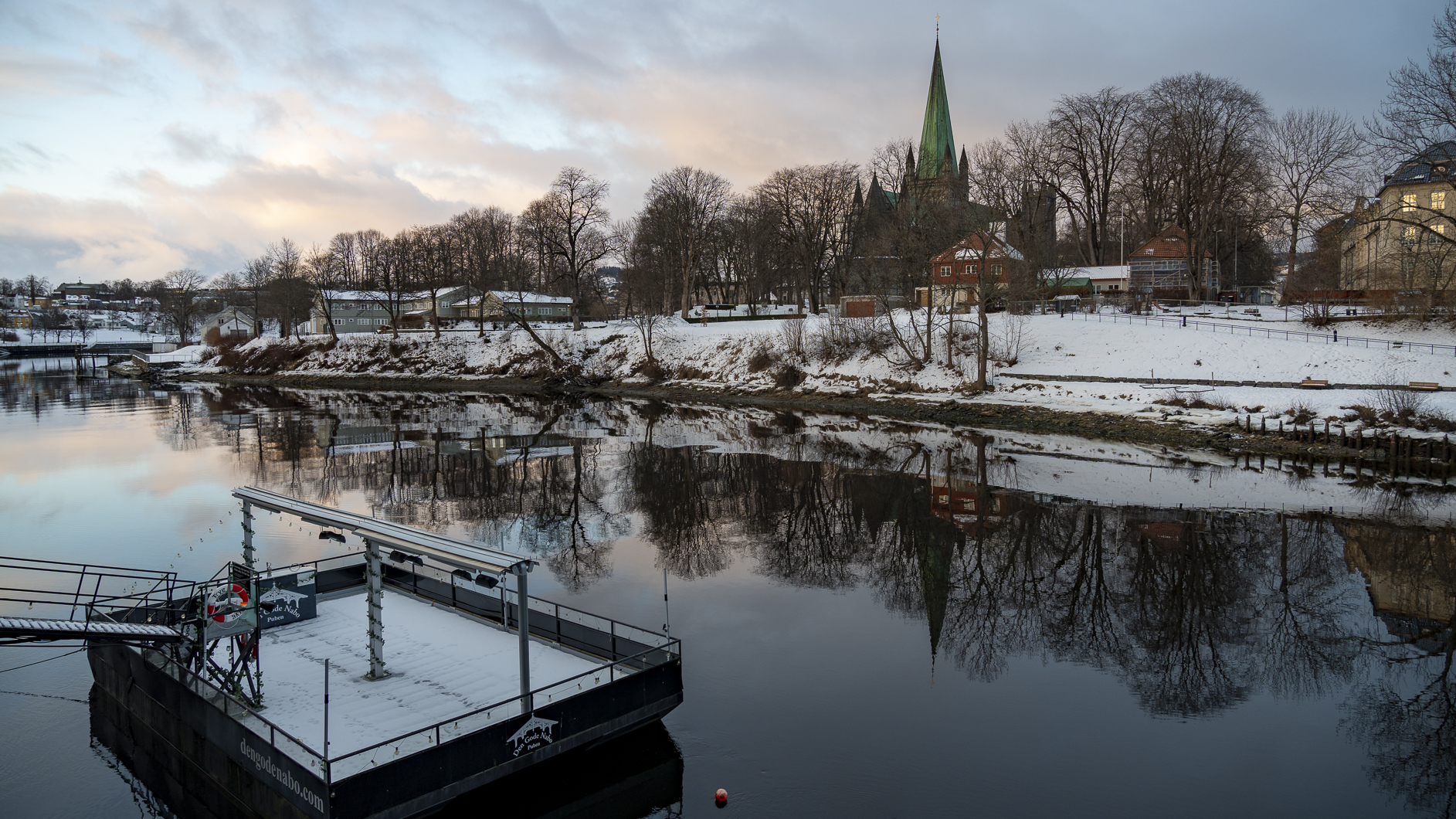 Trondheim wurde im Jahre 997 als Residenz des Wikingerkönigs Olav Tryggvason unter dem Namen Nidaros als damalige Hauptstadt gegründet. Der Nidarosdom ist das wichtigste Wahrzeichen der Stadt. Ausserdem ist er das Nationalheiligtum Norwegens und eine der grössten Kathedralen Nordeuropas. In den alten Speicherhäuser am Fluss Nidelva im Stadtviertel Bakklandet, findet man heute schöne Cafés, Bars und kleine Geschäfte. Wer Hand in Hand über die alte Stadtbrücke Gamle Bybro läuft soll für ewig zusammen bleiben. So unser Expeditionsleiter vom Schiff.